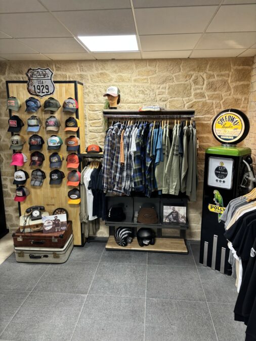 Seban Motos Racing Parts n'est pas seulement un atelier ! C'est aussi un Showroom avec motos et accessoires RST, et également la vente de la marque VonDutch (casquettes, tee-shirts...)
